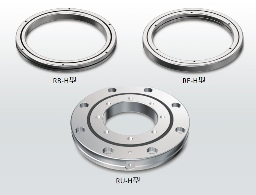 在近幾年的工業機械市場中,對設備的剛性要求越來越大。 THK順應旋轉軸承的高剛性需求,通過設計適合高剛性的內部結構,並保持與現有產品間的尺寸兼容性,開發出新的高剛性系列「RB-H/RE-H/RU-H型」。其產品陣容分別為,「RB-H型」軸徑為ø50~700的42種型號,「RE-H型」軸徑為ø50~600的41種型號,「RU-H型」軸徑為ø35~350的8種型號,共91種型號以滿足各種需求。